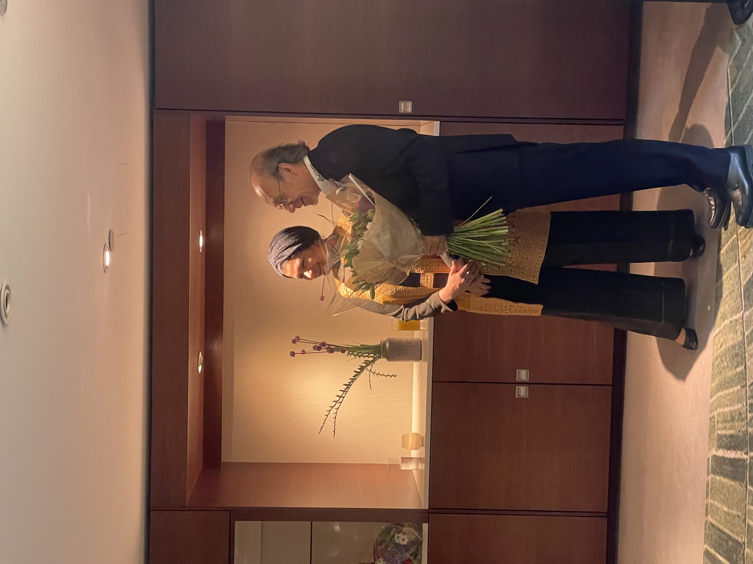 H.E. Mr. Roberto Calzadilla Sarmiento, Ambassador of Bolivia receiving flowers from the Dean