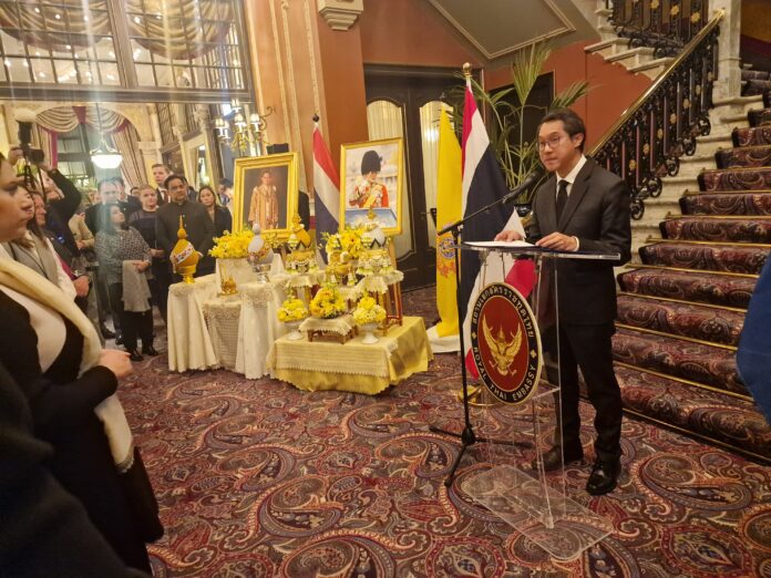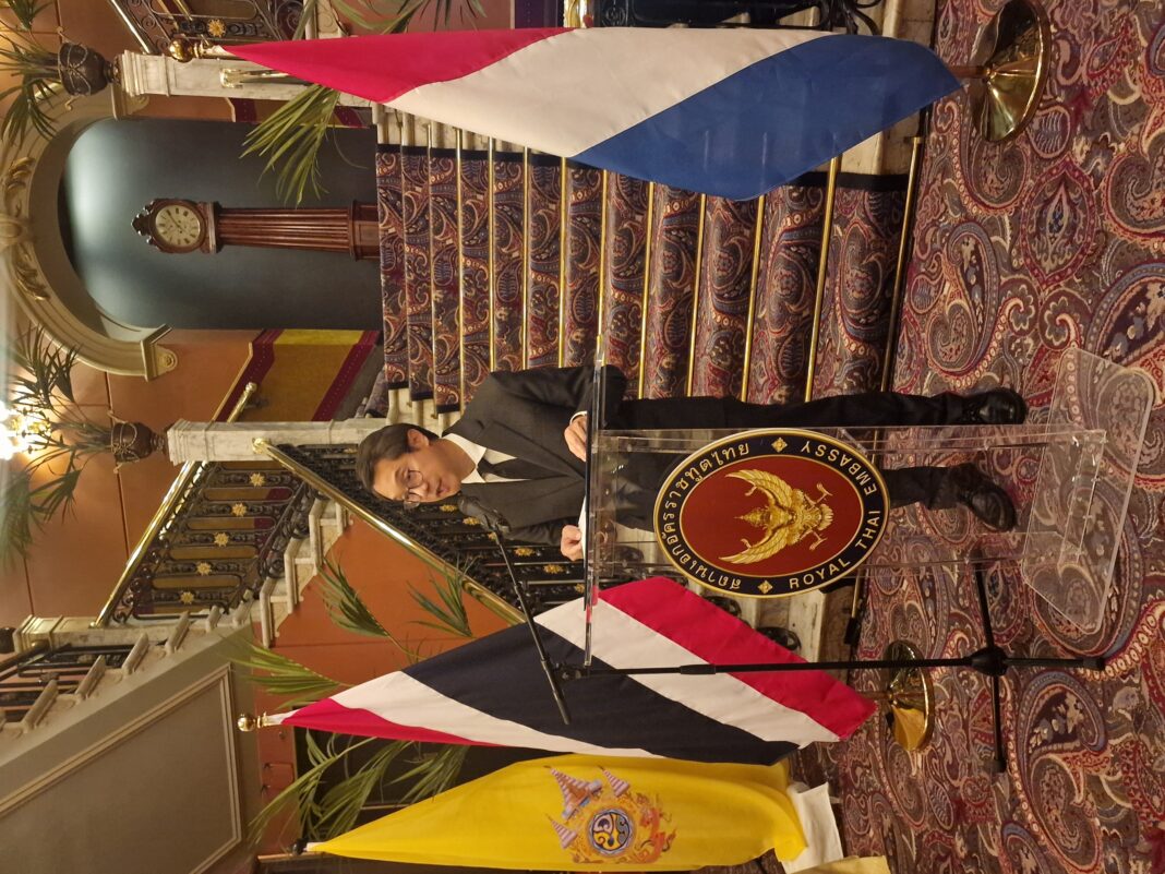 He reaffirmed his commitment to continued engagement with the diplomatic community and international institutions in the Netherlands, before inviting guests to raise a toast to the good health and happiness of His Majesty the King of Thailand and His Majesty the King of the Netherlands.