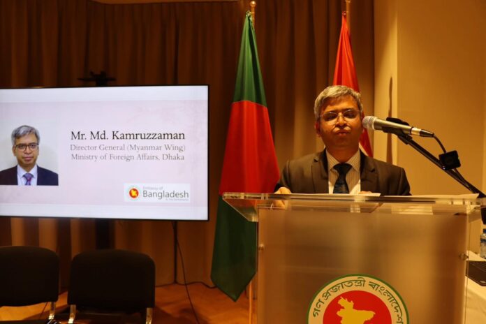 In his remarks, Mr. Md. Kamruzzaman, Director General (Myanmar Wing), Ministry of Foreign Affairs of Bangladesh, reaffirmed Bangladesh’s unwavering commitment to addressing the Rohingya crisis. He emphasized Bangladesh’s continued humanitarian support to over 1.2 million Rohingya refugees and reiterated the country’s call for early and safe repatriation, alongside accountability for international crimes committed against the Rohingya.