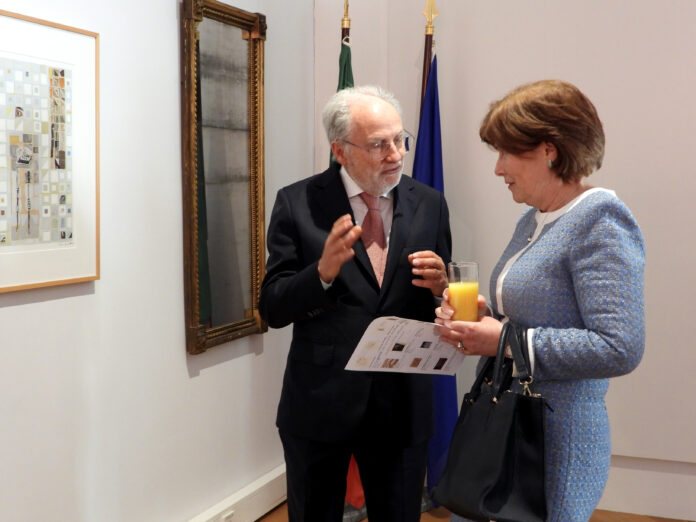 Dr. António Gomes de Pinho and the Ambassador of Ireland, H.E. Ann Derwin. Portuguese Embassy, Anniversary of the Carnation Revolution, exhibition of graphic works Vieira da Silva.