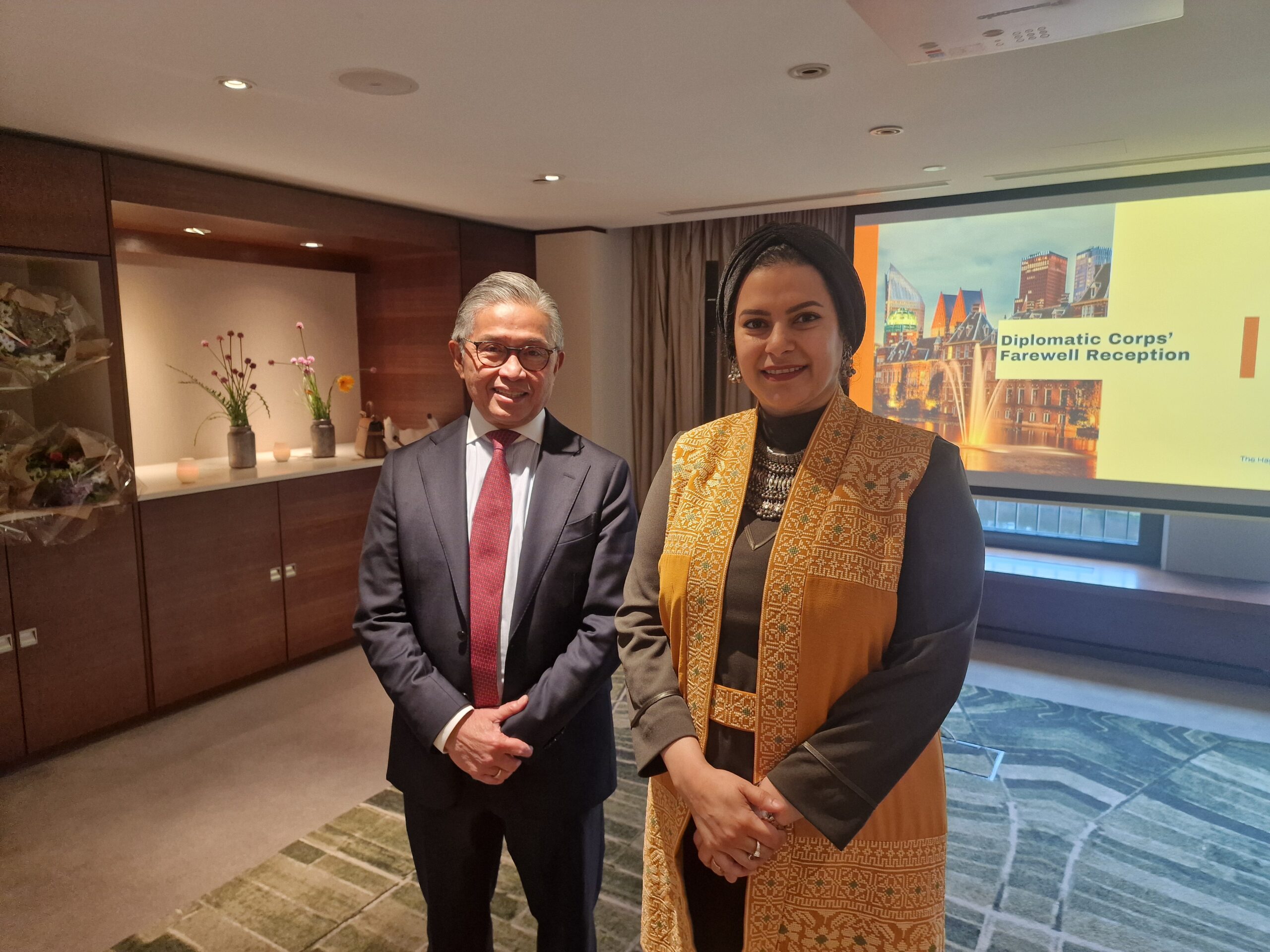 H.E. Mr. Mayerfas, Ambassador of Indonesia and the Dean of the Diplomatic Corps, H.E. Ms Sahar Ghanem